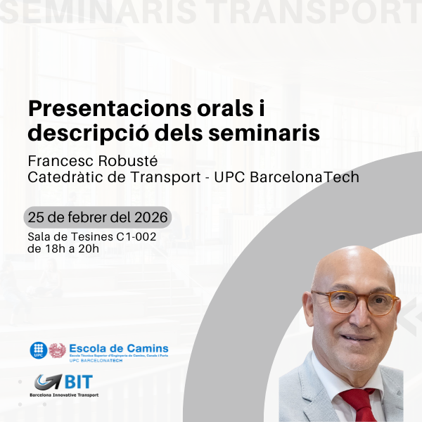 El dimecres 25 de febrer el professor de l'Escola i Catedràtic de Transport de la UPC BarcelonaTech, el Sr. Francesc Robusté, presentarà del programa i farà una descripció dels seminaris de transport que es celebraran durant els propers mesos.