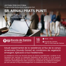- Determinar el coeficient d'arrossegament (CD) dels extensos canyars d'Arundo Donax en condicions de vegetació emergent.