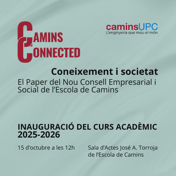 L'Escola de Camins inaugura el curs 2025-2026 amb la presentació del seu nou Consell Empresarial i de Compromís Social. L'acte, sota el lema "Camins Connected: Coneixement i Societat", comptarà amb una taula rodona amb líders del sector per debatre el futur de l'enginyeria civil i la col·laboració universitat-empresa.