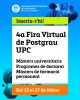 Del 23 al 27 de febrer, la UPC organitza la Fira Virtual de Postgrau UPC en la què s’informarà de l’àmplia oferta d’estudis de postgrau de la Universitat i en la que tindreu l’oportunitat de participar en les sessions informatives dels màsters de l'Escola de Camins. Consulteu el calendari de sessions i inscriviu-vos!
