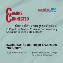 El acto, bajo el lema "Camins Connected: Conocimiento y Sociedad", contará con una mesa rodona con líderes del sector para debatir el futuro de la ingeniería civil y la colaboración universidad-empresa.