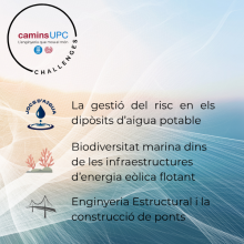 L'Escola de Camins estrena el programa "Camins Challenges" per al curs 2025-2026 amb tres desafiaments en col·laboració amb empreses i institucions sobre aigua, estructures i energia eòlica marina.